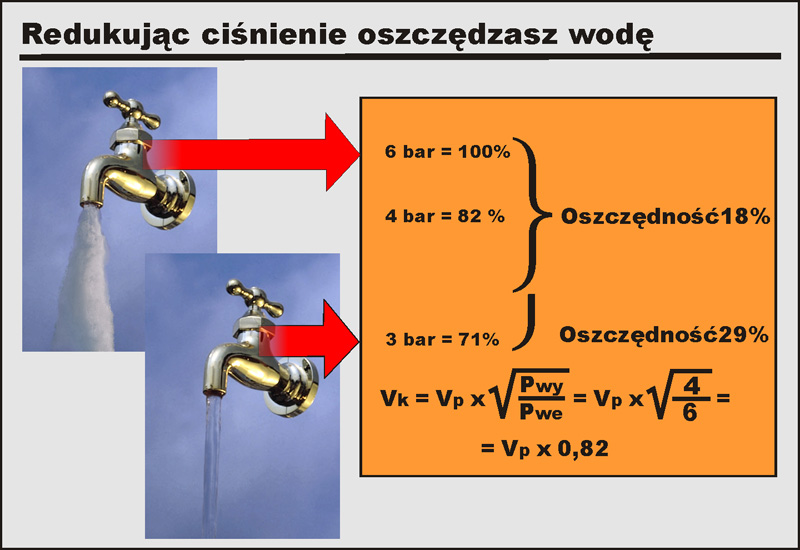 – oszczędność wody, tzn. zapobiega nadmiernym przepływom wody. Im niższe ciśnienie, tym mniej wody pojawi się w punkcie poboru,